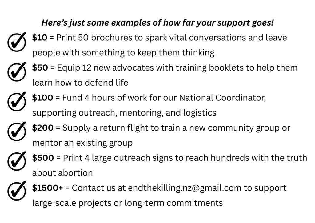 Every single year in NZ, thousands of preborn children lose their lives through abortion, with thousands more mothers and fathers left wounded by a decision they can never undo. This is more than a silent tragedy; this is a devastating injustice.